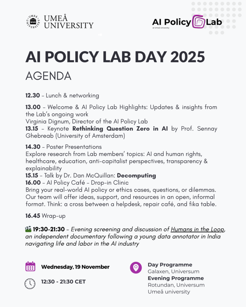 We look forward to welcoming you to the AI Policy Lab Day at Umeå University!